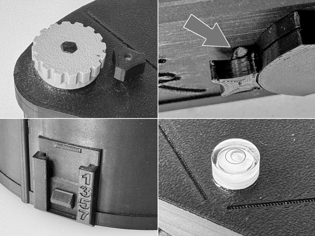 Auf der Modellseite auf Thingiverse gibt es weitere Informationen zur Montage. Für das Sichtfenster, durch das später die Aufnahmenummern zu sehen sind, schnitt ich eine rote Folie zurecht und fixierte sie mit einem Hauch Sekundenkleber.