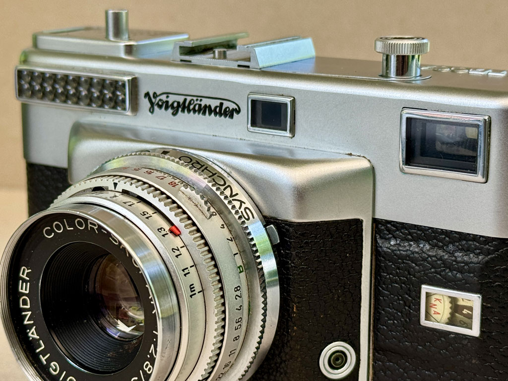 Schon beim ersten Blick auf eine Kamera aus der Vitessa-Reihe von Voigtländer war meine Neugier geweckt. Es handelte sich um die Klappversion, eine Faltkamera, bei der das Objektiv im geschlossenen Zustand von zwei seitlich angebrachten Klappen geschützt wird. Besonders ins Auge fiel mir der ungewöhnliche Metallstift, der oben aus dem Gehäuse ragt, eine Konstruktion, die ich so noch nie gesehen hatte. Diese Kombination aus technischer Raffinesse und ungewöhnlichem Design faszinierte mich vom ersten Moment an.