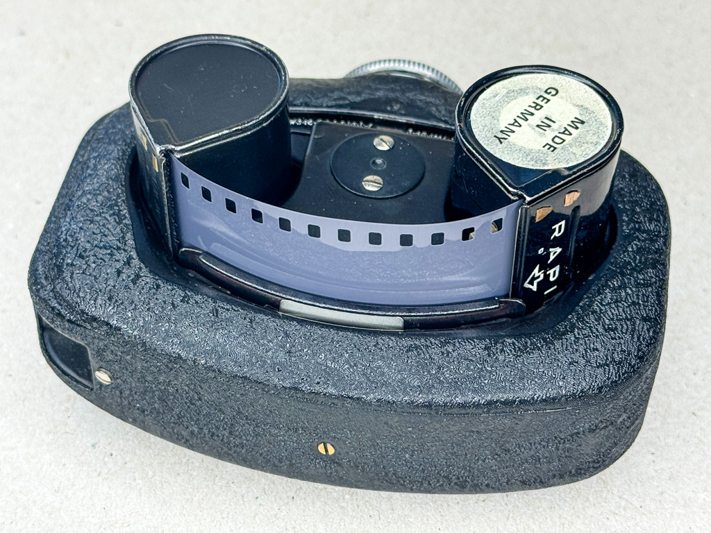 Die Durst DuCa arbeitet mit 135er-Film in Agfa Karat- oder Rapid-Patronen. Da diese heute nicht mehr im Handel erhältlich sind, muss beim Erwerb dieser Kamera darauf geachtet werden, dass mindestens eine Leerpatrone dabei ist. Findet man noch eine zweite, so besitzt man die Grundausrüstung, mit der die DuCa wieder zum Leben erweckt werden kann. Wie heute erhältlicher Kleinbildfilm in die Agfa-Patrone kommt, beschreibt Mike O’Connell in seinem Beitrag «Karat/Rapid Cassettes» gut und verständlich. Deshalb gehe ich im Rahmen dieses Kameraportraits nicht im Detail darauf ein. Schlussendlich passen 12 Aufnahmen im Format 24×36 mm auf einen Film in einer Agfa-Patrone.